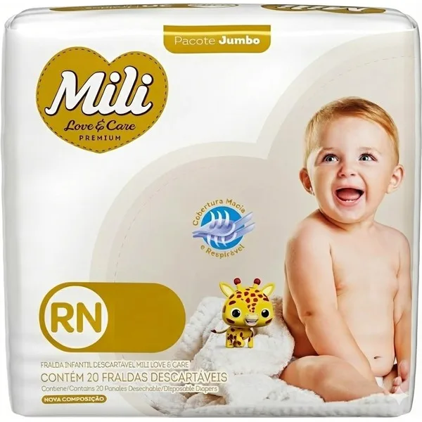 O Baby Poupe compara 2 lojas para MILI MILI Love&Care RN RN. O menor preço hoje é R$ 1.36 na Mercado Livre, com custo de R$ 1.36 por fralda. Este produto tem nota 4.8⭐ baseado em 20 avaliações de usuários. O pacote contém 18 fraldas.