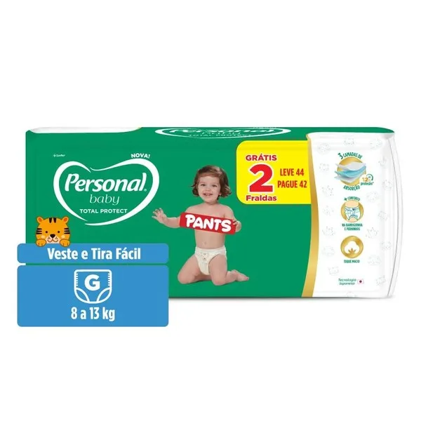 O Baby Poupe compara 8 lojas para Personal Baby Personal Baby Total Protect G G. O menor preço hoje é R$ 1.55 na Amazon, com custo de R$ 1.55 por fralda. Este produto tem nota 4.7⭐ baseado em 1.490 avaliações de usuários. O pacote contém 40 fraldas.