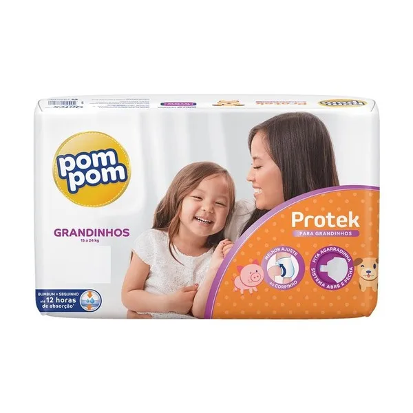 O Baby Poupe compara 2 lojas para POM POM POM POM PROTEK XXXG XXXG. O menor preço hoje é R$ 1.56 na Amazon, com custo de R$ 1.56 por fralda. Este produto tem nota 4.7⭐ baseado em 4.987 avaliações de usuários. O pacote contém 14 fraldas.