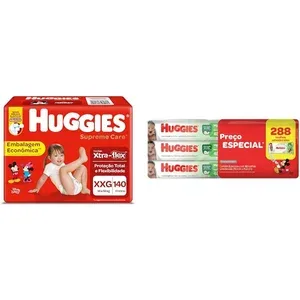 HUGGIES HUGGIES Fralda Supreme Care XXG - 140 fraldas, Cor: Vermelho + Lenços Umedecidos Huggies Max Clean - 288 lenços