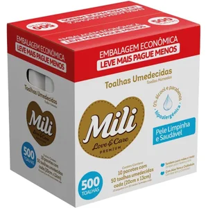 MILI Mili Toalhas Umedecidas Love & Care Premium, Uso Bebê, Aloe Vera e Calêndula, Pack com 10 Pacotes (50 Unidades cada) - A partir de R$ 1.44 | Baby Poupe